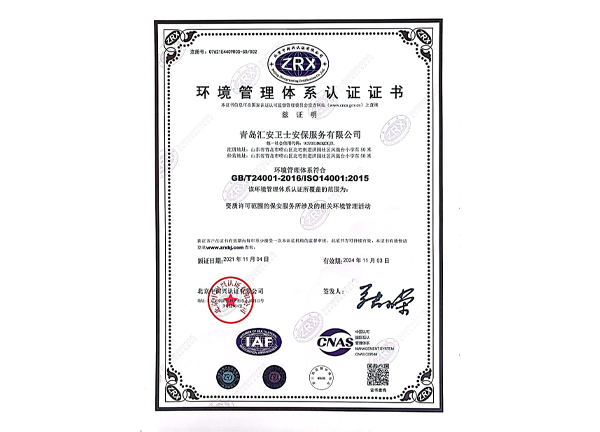 環(huán)境管理體系認(rèn)證證書